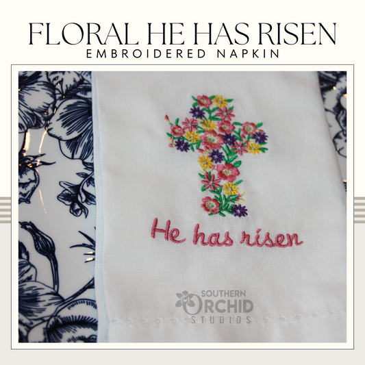 He Has Risen Easter Embroidered Napkin