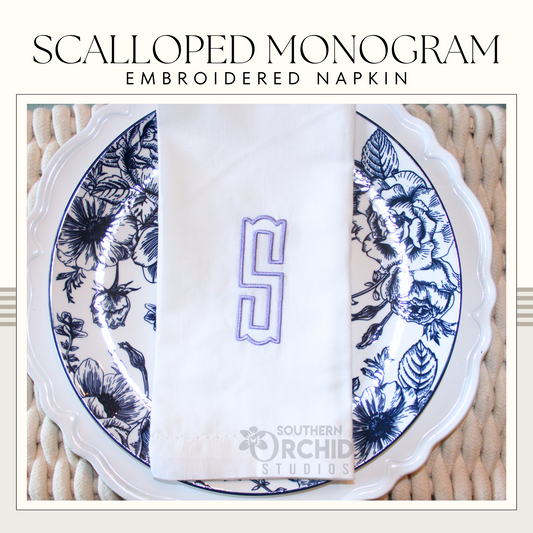 Scalloped Monogram Embroidered Napkins