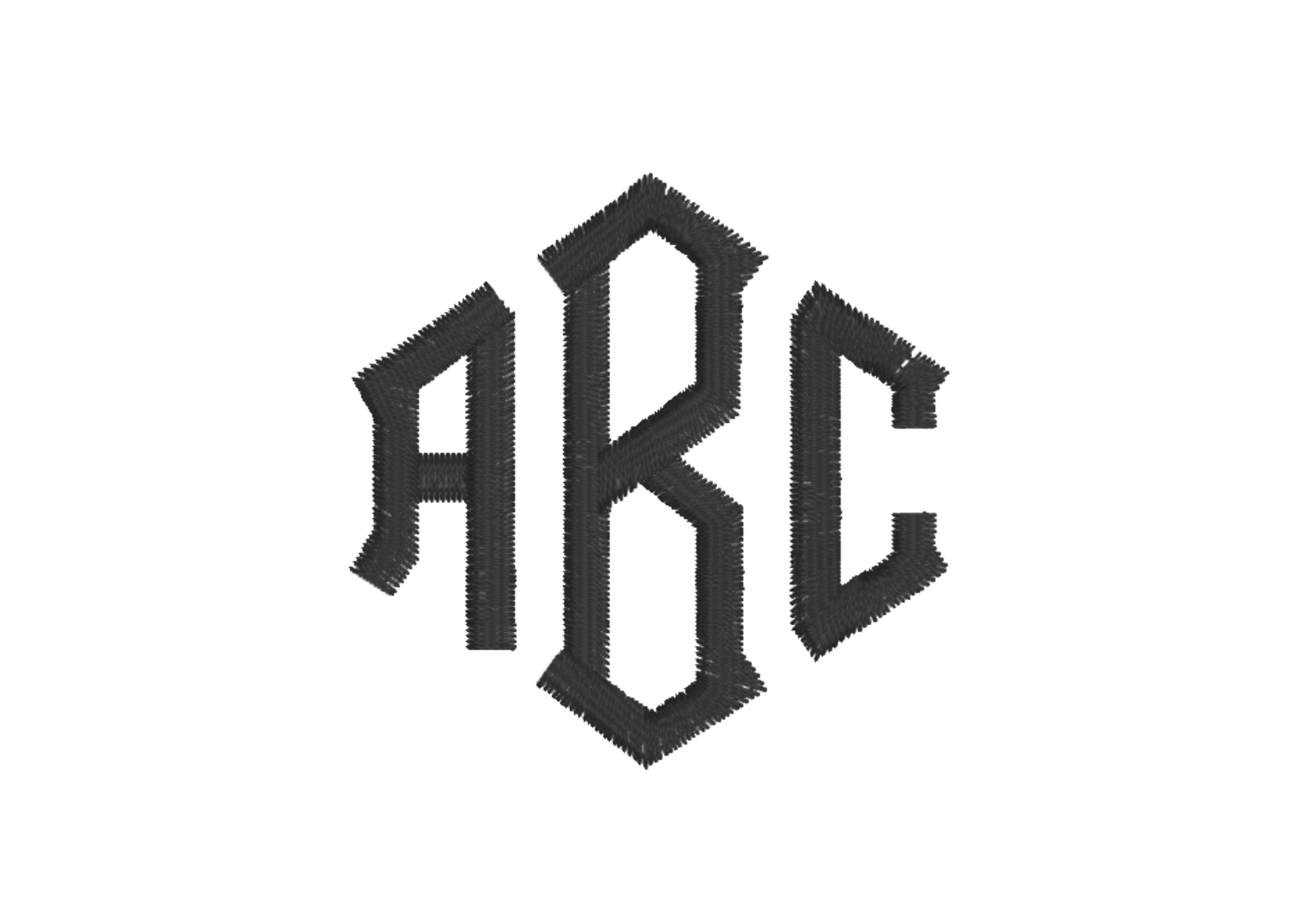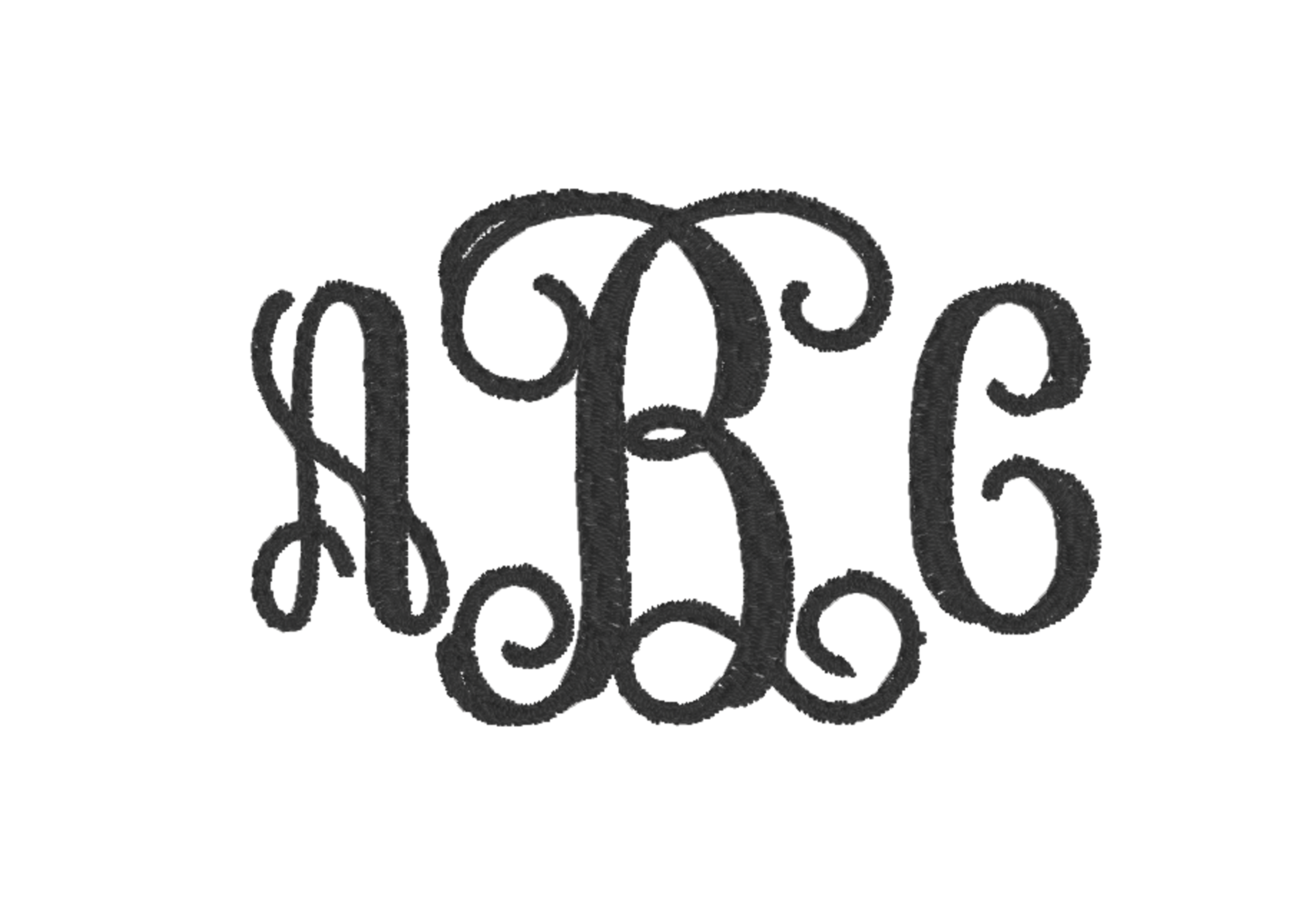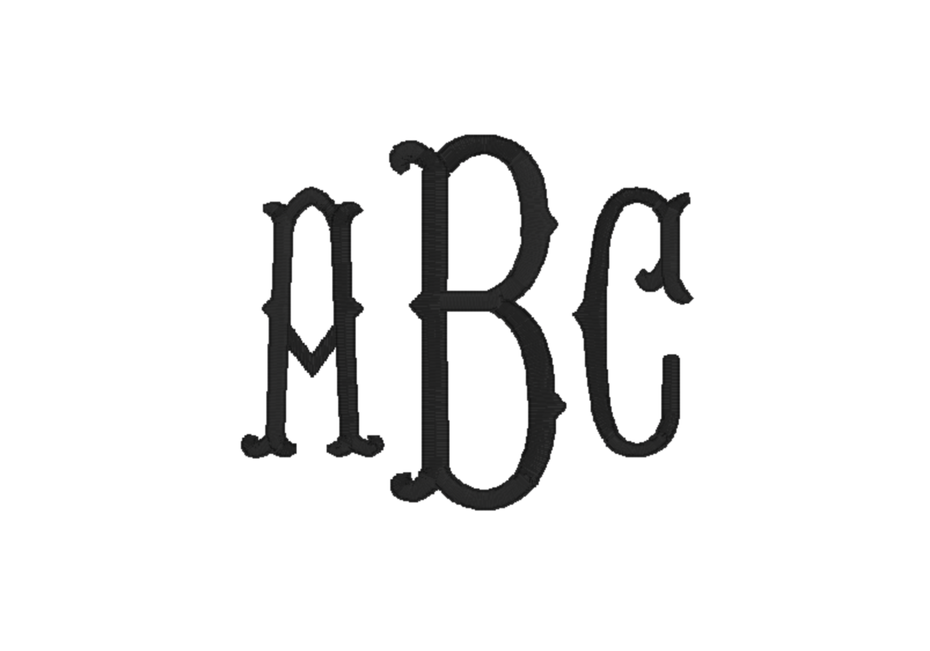 First and middle initials stacked on the left, last initial large on the right. A popular choice for masculine or sporty items.