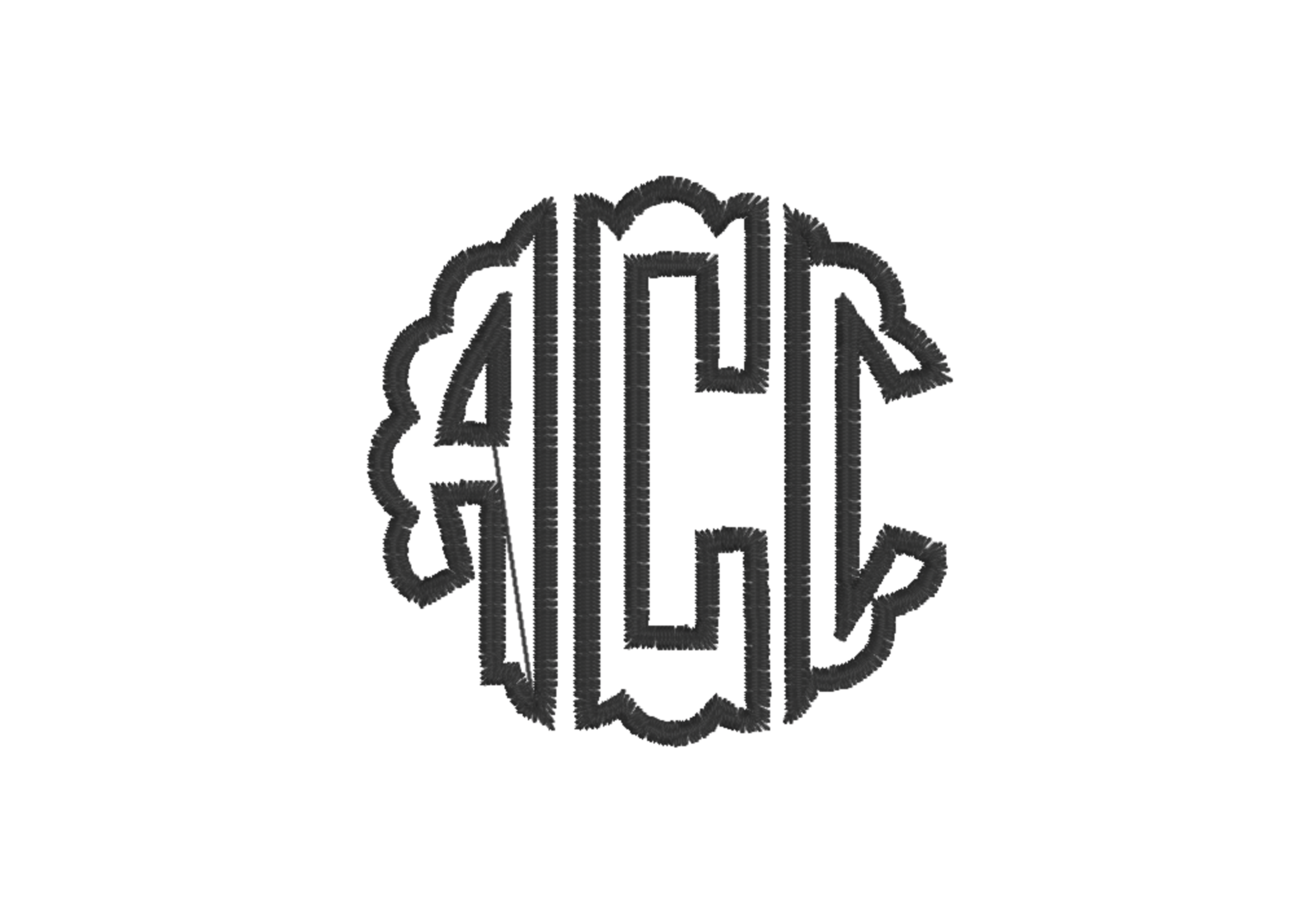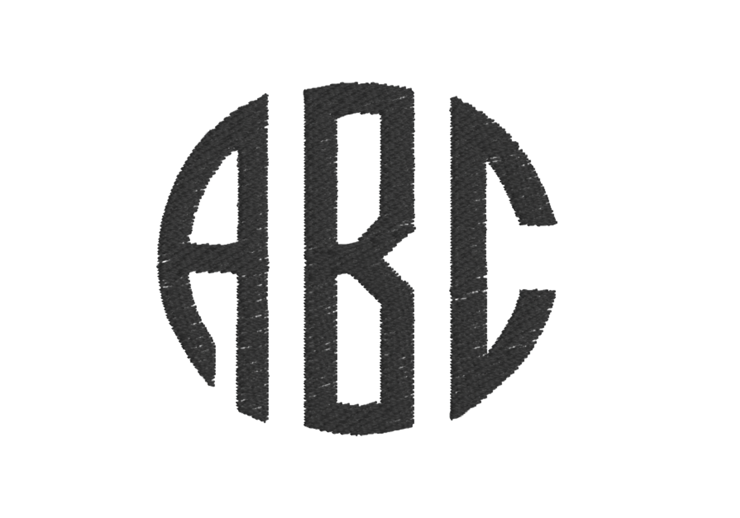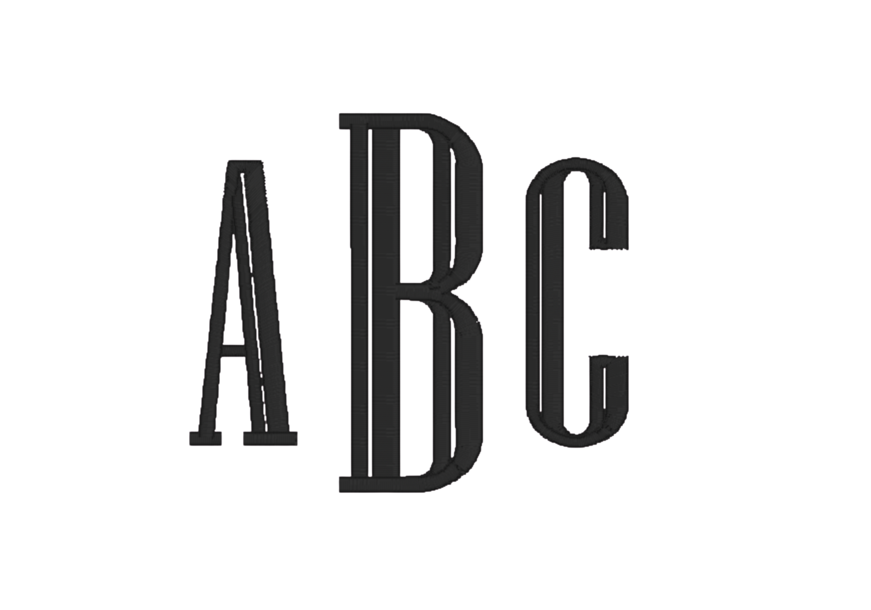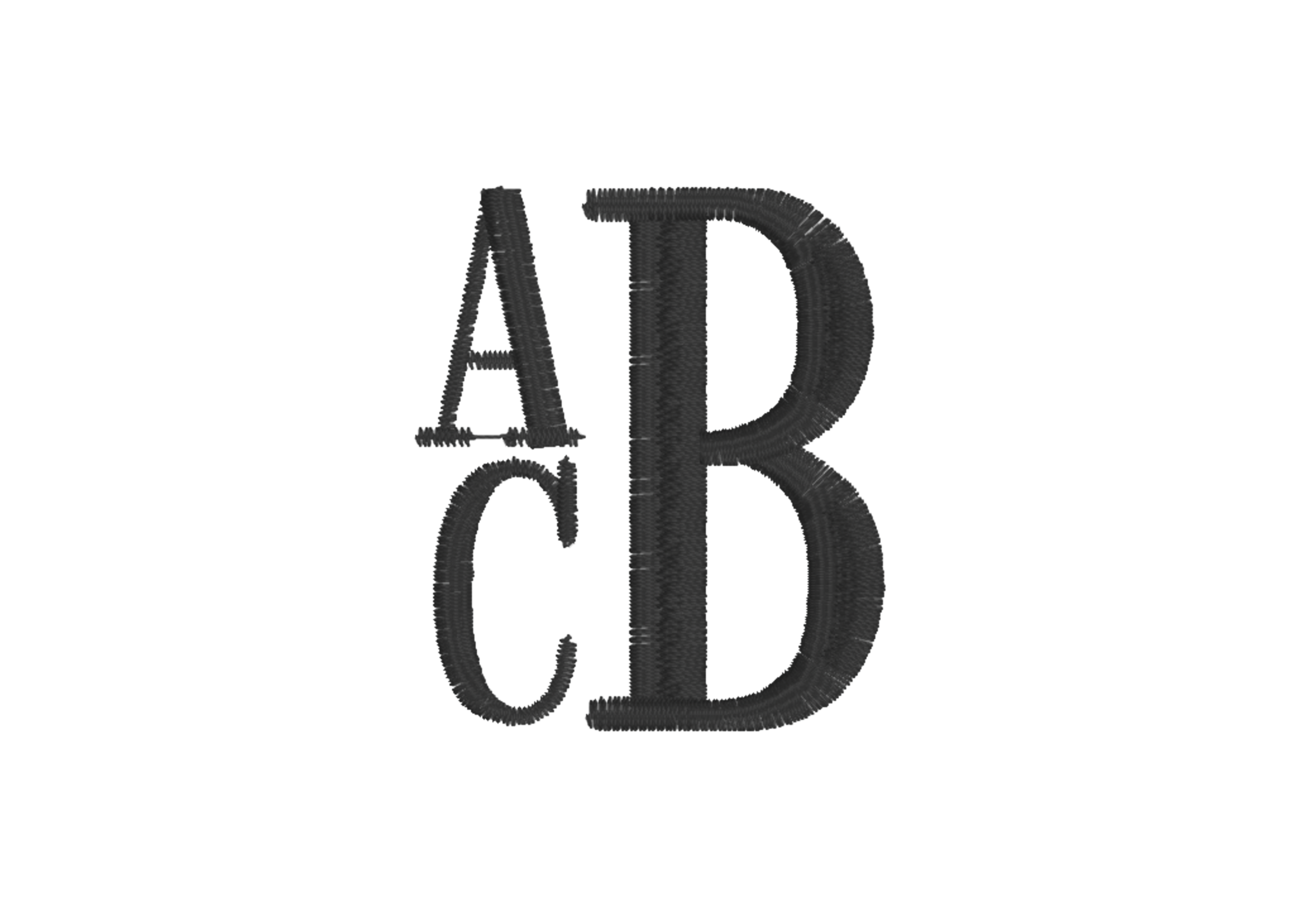 First and middle initials stacked on the left, last initial large on the right. A popular choice for masculine or sporty items.