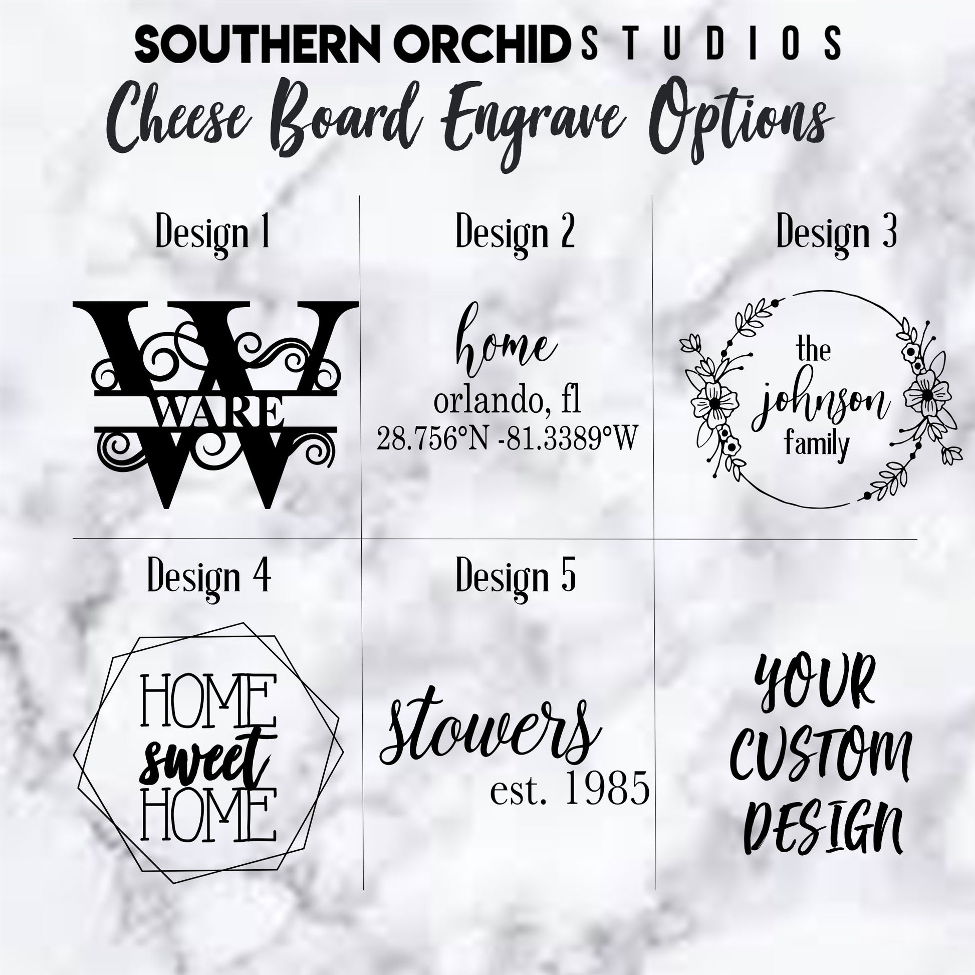 Personalized laser engraved bamboo cheese board adds the right accent to your serveware. Perfect gift for weddings, housewarmings and more!