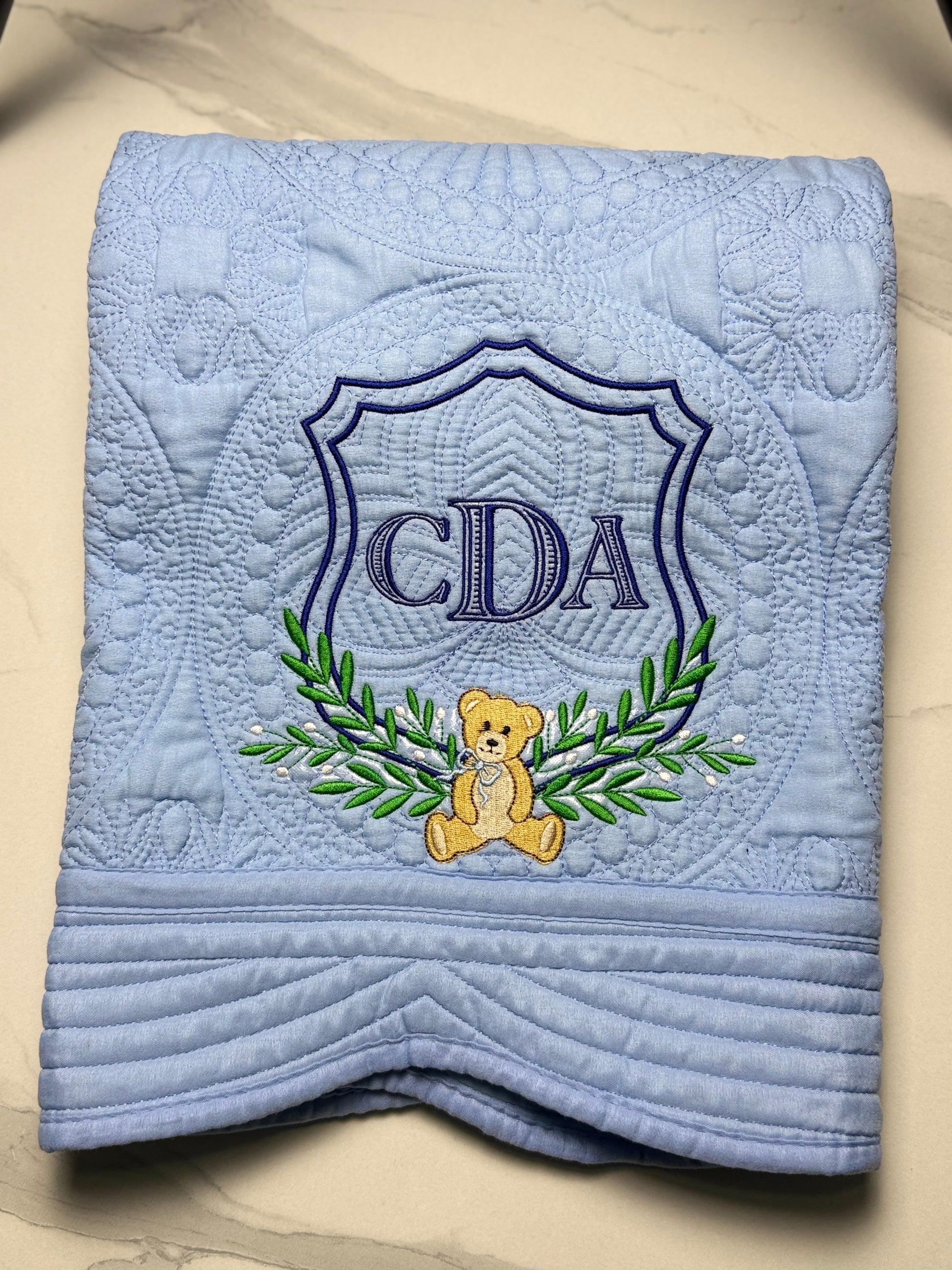 Wrap your little one in timeless elegance with our personalized embroidered baby heirloom quilt blanket - a heartfelt gift for baby showers, new parents or a special keepsake to treasure for years to come. Handcrafted with love and care, this quilt adds a beautiful touch to any nursery. Make it uniquely theirs by adding the baby’s name or monogram for a personal and meaningful detail.